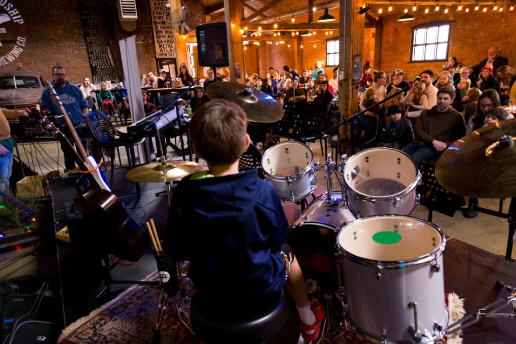 These showcases take place at Shawn & Ed’s, a space we’ve partnered with for over four years because it creates a relaxed, welcoming vibe for students and families alike.